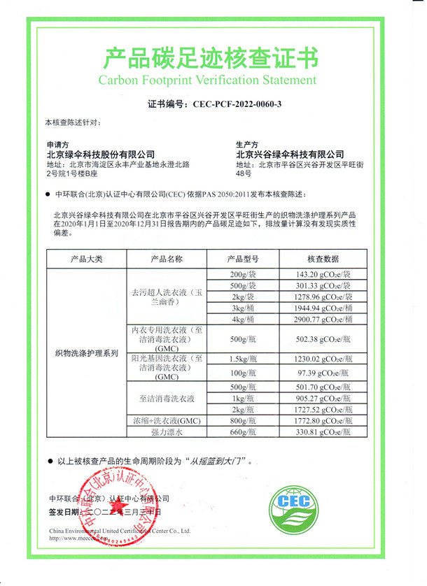 下一篇:北京興谷綠傘科技有限公司-CEC-PCF-2022-0060-2-織物洗滌護理系列