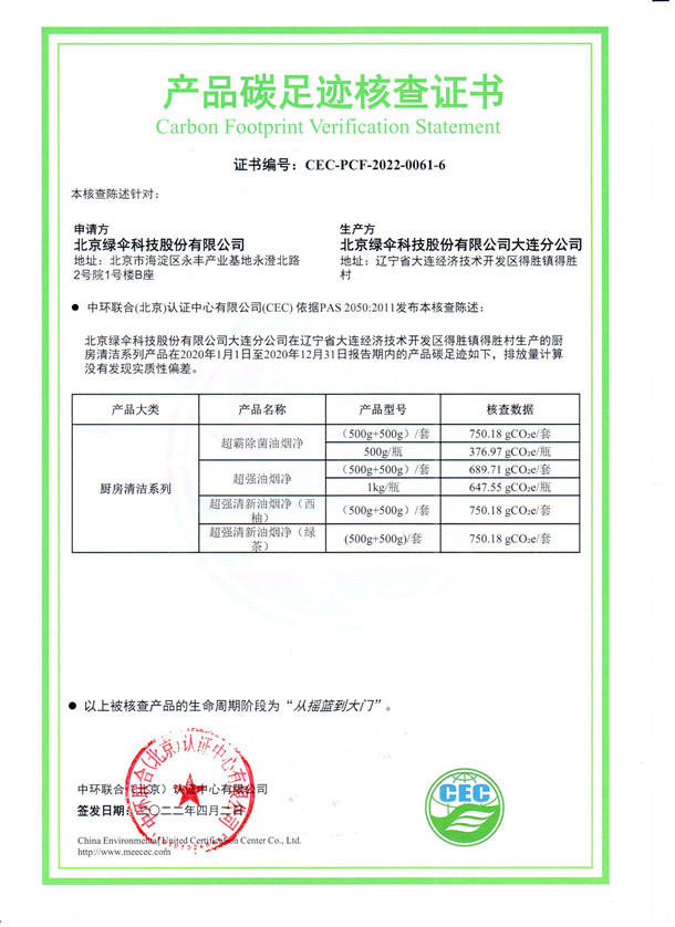 下一篇:北京綠傘科技有限公司大連分公司-CEC-PCF-2022-0061-5-廚房清潔系列