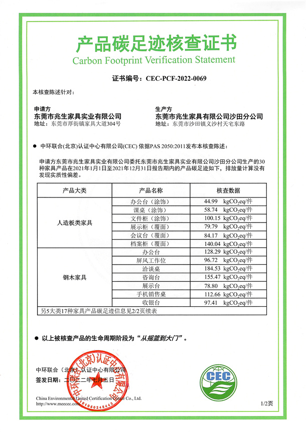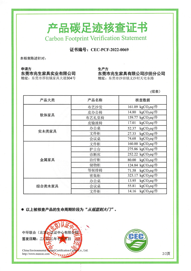 東莞市兆生家具有限公司沙田分公司CEC-PCF-2022-0069