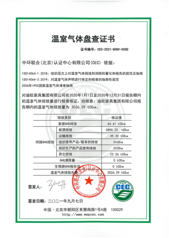 迪歐家具集團(tuán)有限公司-CEC-2021-GHGV-0050-溫室氣體盤(pán)查證書(shū)