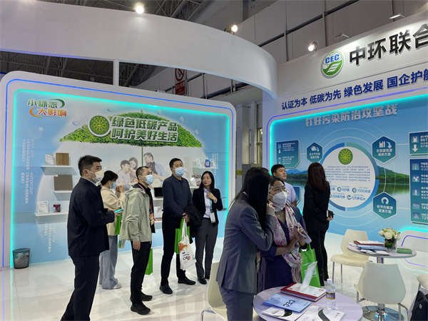 展臺上,中環聯合集中展示了中國環境標志產品認證以及降碳、減污、擴綠、增長等環保綠色技術服務在助力環境污染防治、節能減排、推動綠色生產與消費等方面的成果與典型案例,提供了興業助企的環保服務綠色通道。據《中國環境標志產品績效評估報告》(2022版)顯示,截至目前,生態環境部共頒布了132項環境標志標準,現行有效標準109項,累計認證企業7000余家,已有208余萬種規格型號的產品獲得了中國環境標志認證,產品種類涉及印刷、家具、建材、紡織品、電子產品、汽車、日化產品、包裝等行業,形成了每年5萬多億產值的綠色市場。以2021年為例,環境標志產品認證有效證書數超過1.2萬張,有5000余家企業、208萬種型號通過了環境標志認證,為市場提供了大量優質的綠色環保產品,優化了市場綠色產品的供給能力,支撐了我國綠色消費政策的實施,積極推動了低碳綠色的生產和生活方式的形成。