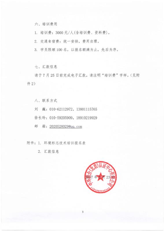 環(huán)境標(biāo)志技術(shù)培訓(xùn)報(bào)名表及匯款信息