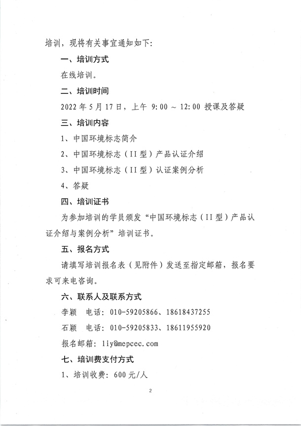 關于舉辦 “中國環境標志 (Ⅱ 型 )產品認證介紹與案例分析” 培訓的通知
